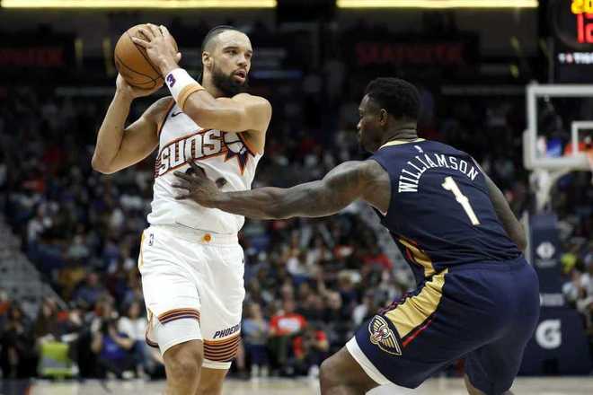 太陽過去兩場連贏湖人與鵜鶘收獲2連勝,鵜鶘過去兩場連輸騎士與太陽遭遇2連敗,本賽季前兩次交鋒太陽均取勝,前一天太陽客場115-108戰勝鵜鶘。本場鵜鶘缺少穆雷與瓊斯,太陽缺少杰倫-格林、阿倫、鄧恩。首節雙方早早開啟對攻模式,前3分鐘太陽6-7落后,太陽一波7-2攻勢反超4分。墨菲三分命中,太陽連得5分擴大優勢,并在之后繼續維持23-18領先優勢。墨菲與錫安聯手持續得分反超比分,首節結束太陽32-33落后鵜鶘。首節太陽三分14中5,狄龍7中4得到10分與布克6中2僅得到5分,鵜鶘三分9中4,墨菲3記三分11分與錫安8分。