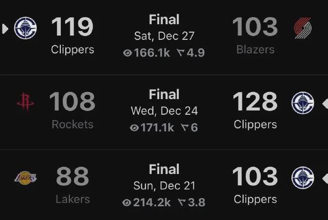 快船不沉了,浮起來(lái)了,正開(kāi)足馬力往前沖,目前以9勝21負(fù)位列西部第13名,落后第十的開(kāi)拓者2.5個(gè)勝場(chǎng)。